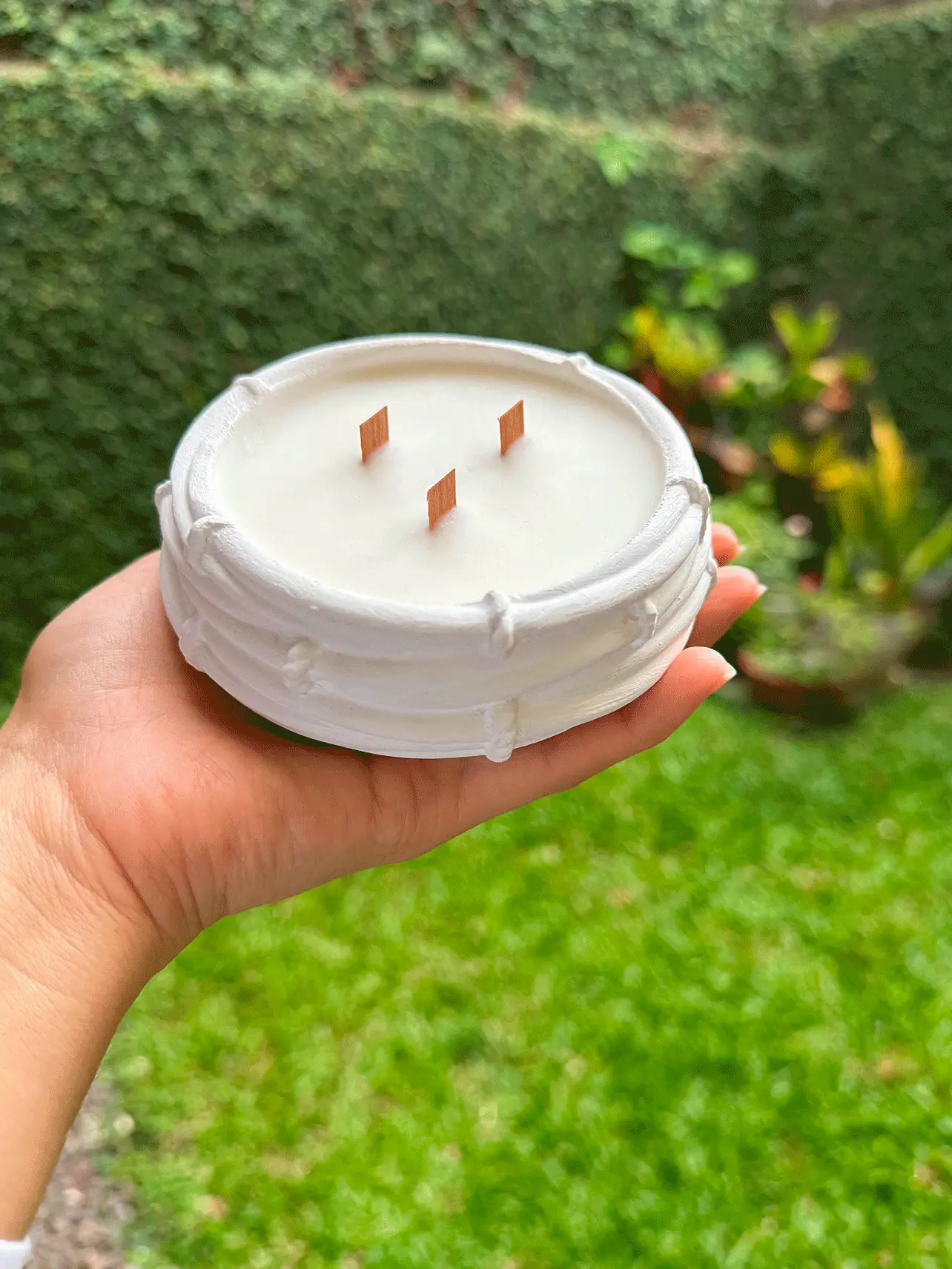Vela aromática en base de yeso elaborada artesanalmente, elegante, ecológica y reutilizable.